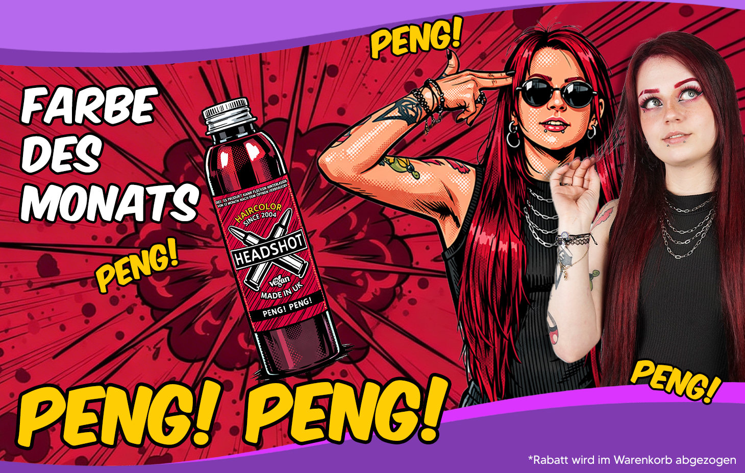 Du betrittst eine Welt der außergewöhnlichen Haarfarben. Hier bei Headshot Haarfarbe findest du eine breite Palette an bunten Haarfarben. Egal ob pinke Haarfarbe oder blaue Haarfarbe: Wir haben sie alle!
