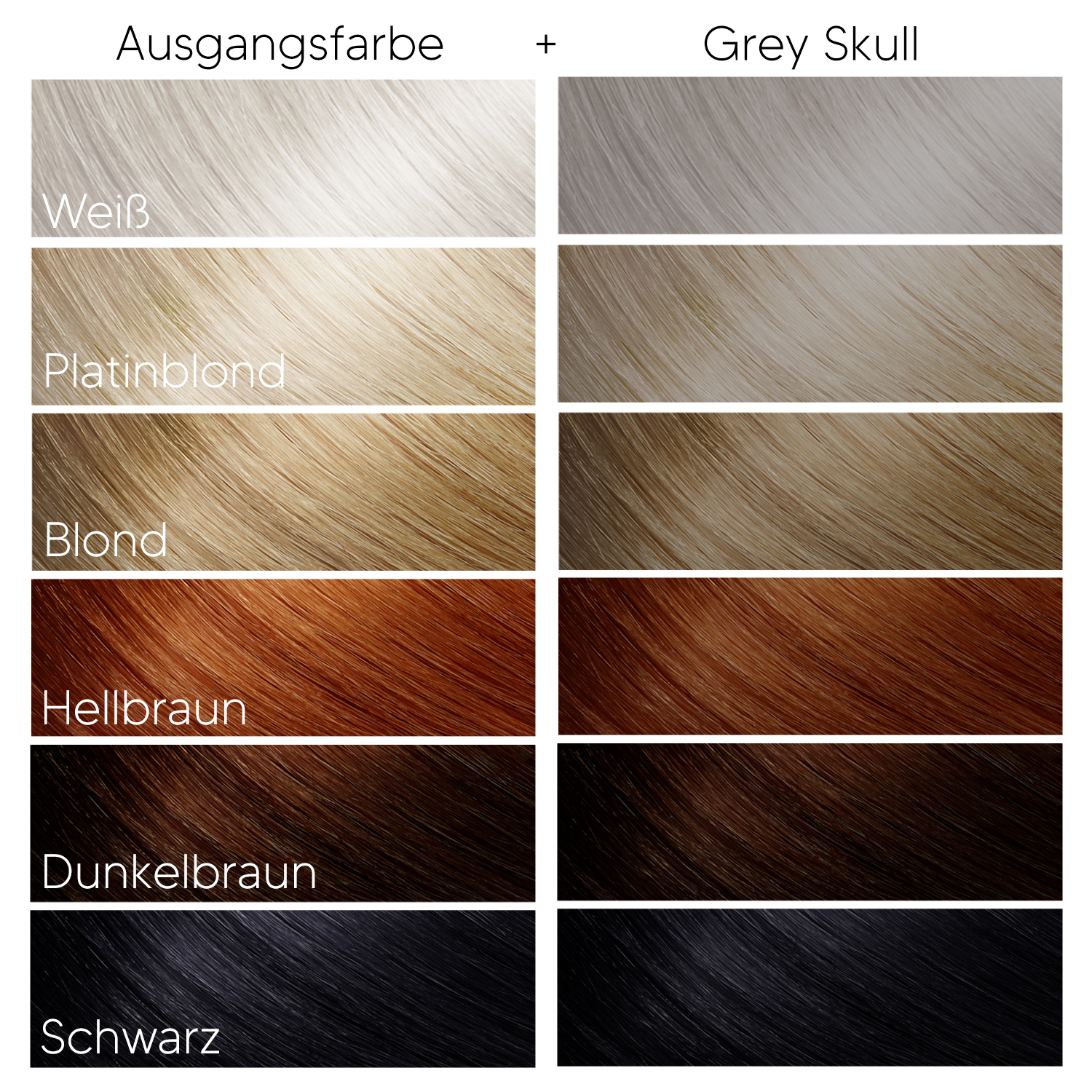 Grey skull hat bei mir sogar hellen Orange-stich aus den Haaren genommen. Gelb ist auch komplett verschwunden und stattdessen sieht man jetzt ein schönes grau-silber. *Wem es zu hell ist kann einen kleks blackout dazugeben.