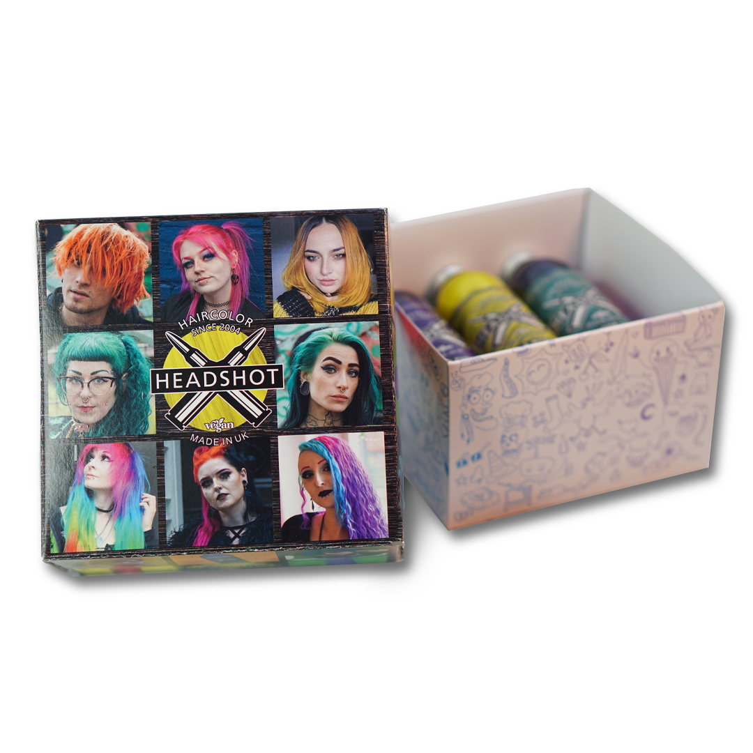 Dieses Set bietet dir 6 Headshot Haarfarben, die du dir selbst zusammenstellen kannst. Einfach unten im Artikel auswählen, es können sechs verschiedene oder auch sechs gleiche Headshot Haarfarben sein.
