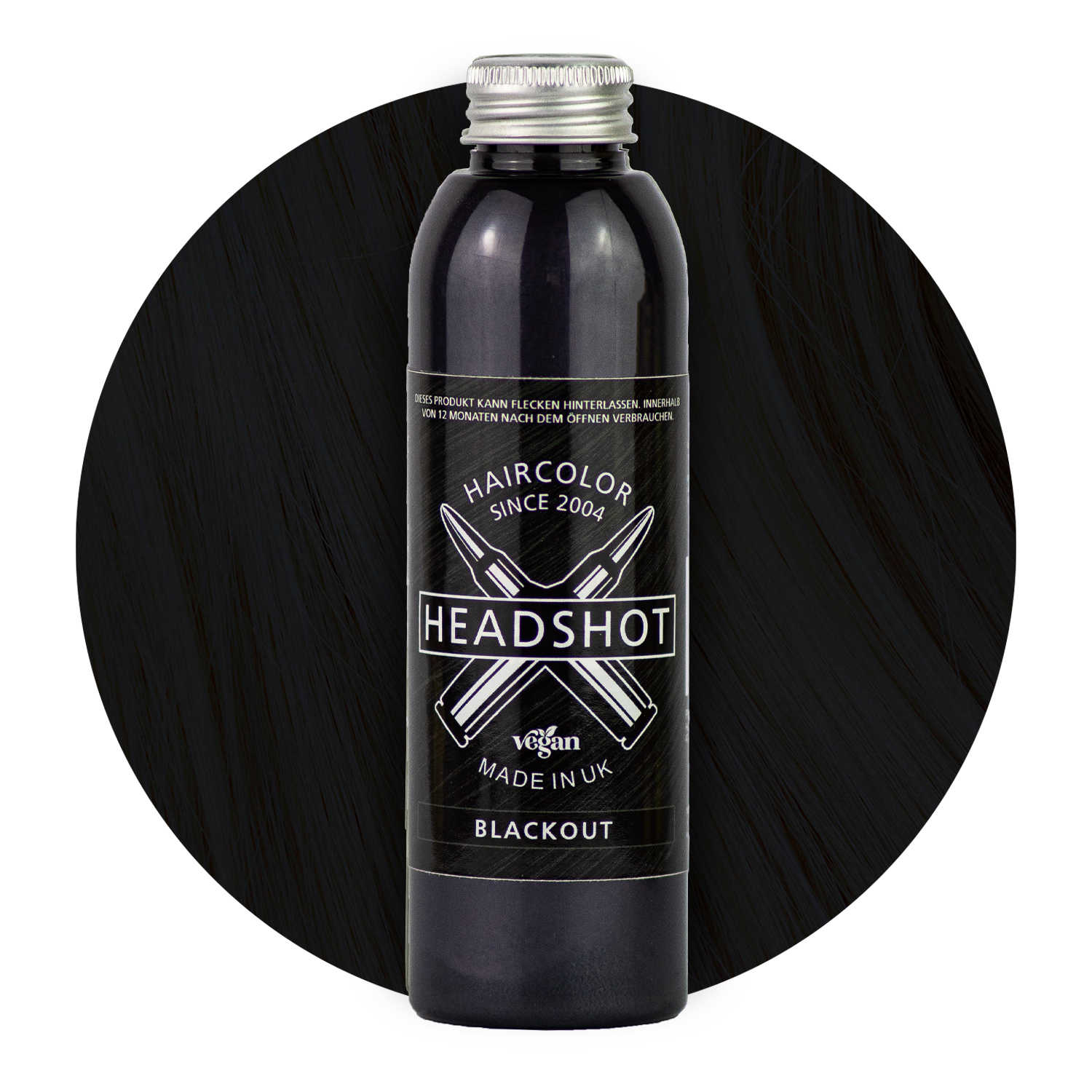 Im Gegensatz zu unseren knalligen, bunten Farben sollten die Haare für ein gutes Ergebnis mit "Headshot Blackout" auf keinen Fall vorher blondiert werden! Je dunkler deine Haarfarbe ist, desto besser. Mit 150 ml Inhalt ist in den Headshot Flaschen deutlich mehr Farbe enthalten als bei anderen Marken. Die Farbe ist vegan, tierversuchsfrei und wird in Europa hergestellt. Für ein optimales Farbergebnis empfehlen wir folgende Vorgehensweise: Feuchte die Haare an und lasse sie ca. 10 Minuten im Handtuch trocknen. Schütze die umliegende Haut mit Babyöl, Vaseline oder Creme. Achtung: Tönung kann Haut und Textilien verfärben. Die Haare Strähne für Strähne satt bestreichen. Benutze Einmalhandschuhe und einen Haarfärbepinsel, beides gibt es in der Drogerie. 30 Minuten oder länger einwirken lassen. Wärme verbessert das Ergebnis. Benutze vor dem Färben keine Pflegeprodukte wie z.B. silikonhaltige Shampoos, sonst wird möglicherweise die Farbe schlechter angenommen. Du kannst die Farben einer Marke auch mischen. Haartönungen sind nicht für Augenbrauen oder Wimpern gedacht, Augenkontakt unbedingt vermeiden! Die Tönungen waschen sich nach und nach wieder aus. Verfärbungen auf Textilien auch nach dem Tönen möglich! Die Farbergebnisse können varieren. Wir empfehlen daher, an einer geeigneten Haarsträhne einen Test durchzuführen, bevor du die Farbe auf das gesamte Haar aufträgst.