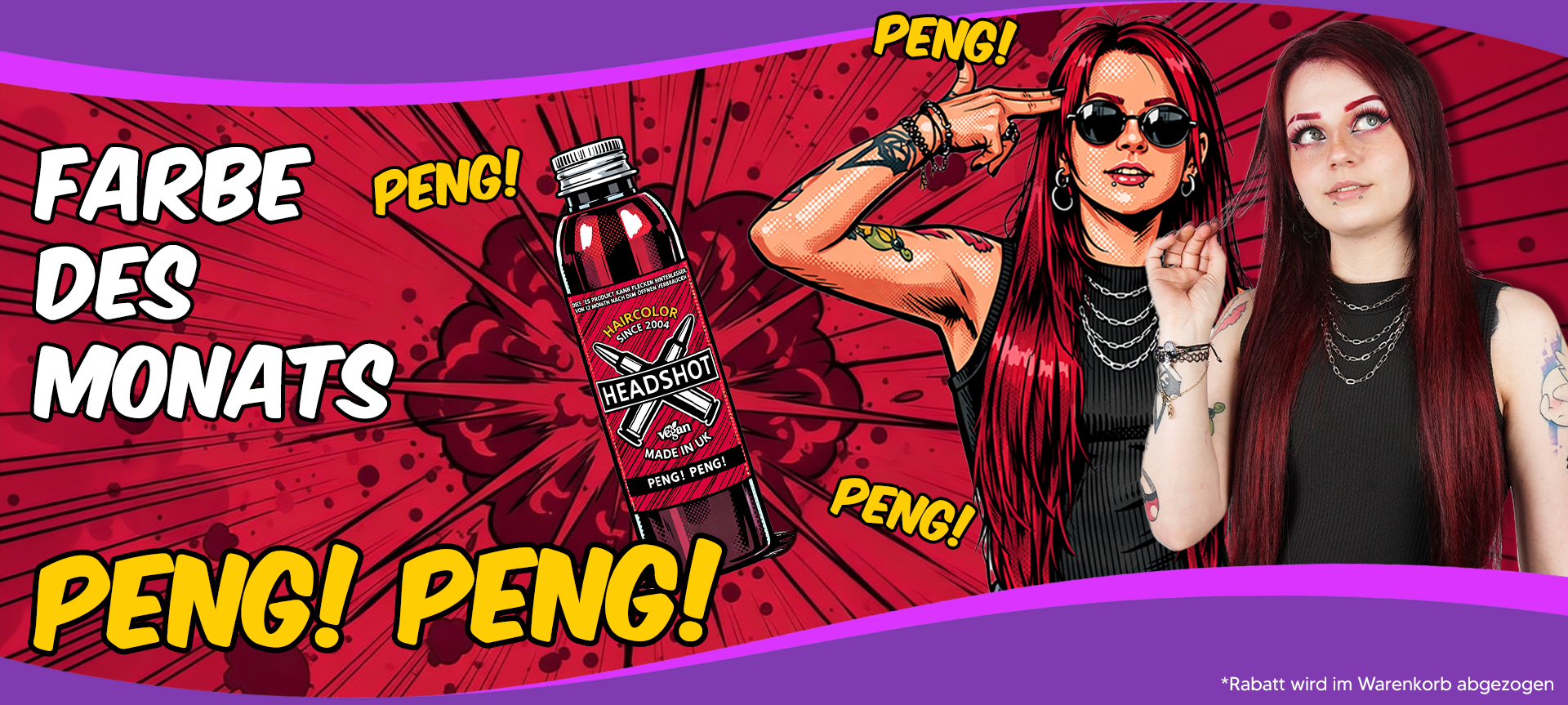 Du betrittst eine Welt der außergewöhnlichen Haarfarben. Hier bei Headshot Haarfarbe findest du eine breite Palette an bunten Haarfarben. Egal ob pinke Haarfarbe oder blaue Haarfarbe: Wir haben sie alle!