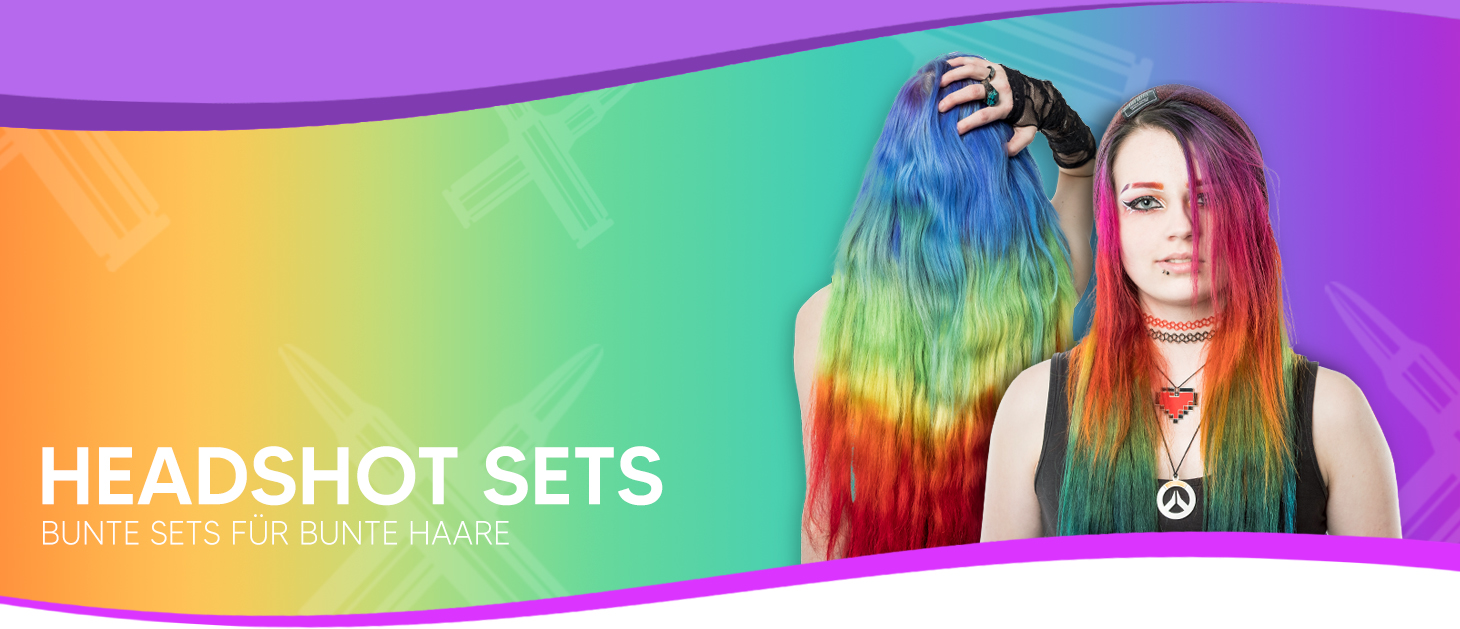 Das Rainbow Set enthält alle sechs Headshot Haarfaben, die du für das Färben von Rainbow Hair benötigst: 1 x Hellfire Red (150 ml), 1 x Captain Carrot (150 ml), 1 x Yippie Ya Yellow (150 ml), 1 x Bluecifer (150 ml), 1 x Psycho Purple (150 ml), 1 x Danger! Danger! (150 ml)Mit 150 ml Inhalt ist in den Headshot Flaschen deutlich mehr Farbe enthalten als bei anderen Marken. Die Farbe ist vegan, tierversuchsfrei und wird in Europa hergestellt.